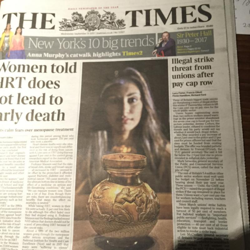 Стаття в лондонському The Times проілюстрована знаменитою знахідкою з кургану Куль-Оба, Крим, Україна.