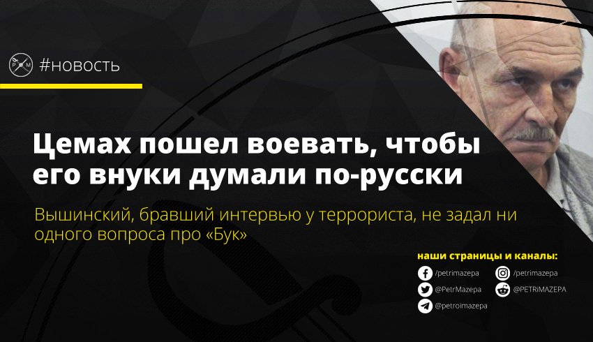 Освобожденные во время обмена 7 сентября подозреваемый по делу катастрофы рейса МН17 Владимир Цемах и бывший главный редактор «РИА Новости Украина» Кирилл Вышинский всплыли в пропагандистском эфире РФ. В нем Цемах рассказал, что пошел воевать, чтобы «его внуки думали на том же языке», а также – о намерении судиться с Украиной.