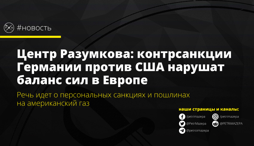 Центр Разумкова: контрсанкции Германии против США нарушат баланс сил в Европе