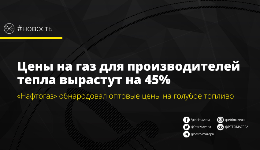 В сентябре оптовая цена на природный газ для производителей тепловой энергии, которым НАК «Нафтогаз Украины» поставляет газ в рамках специальных обязанностей (ПСО), составит 4318,99 грн за тысячу кубометров, тогда как в августе она составляла 2979,16 грн за тыс. куб. м (без учета НДС и расходов на транспортировку газа магистральными и распределительными трубопроводами).