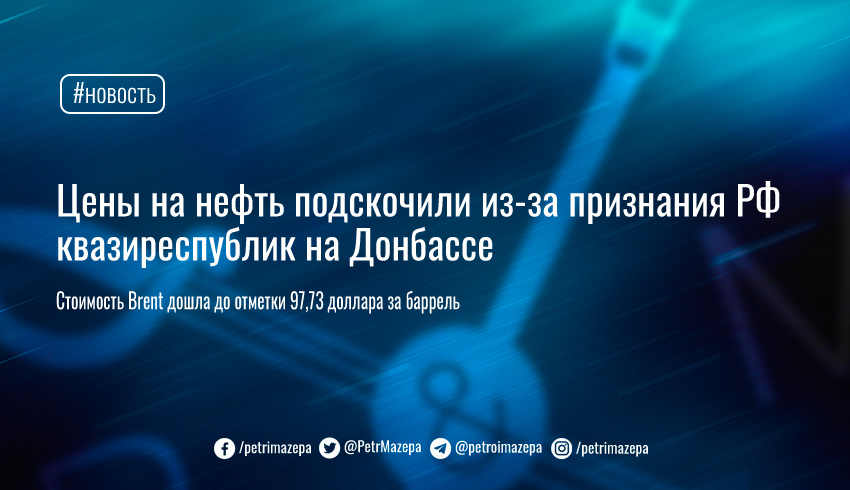 Нефть дорожает на фоне новостей о решении президента России признать «республиками» оккупированные районы Донбасса.