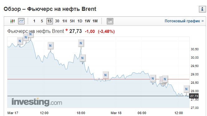 - 9 марта на рынке нефти произошел сильнейший с 1991 года обвал цен. Стоимость североморского сорта Brent обвалилась примерно до 32 долларов.