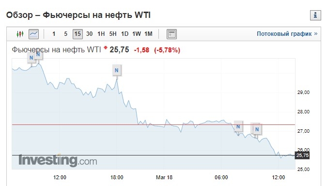 Стоимость нефти начала падать на фоне фактического обнуления ставки Федеральной резервной системы США. Руководство ФРС приняло решение снизить целевой диапазон ставки до 0-0,25% в рамках борьбы с рисками из-за коронавируса. Ранее падению нефтяных цен способствовал провал переговоров стран-участниц сделки ОПЕК+.