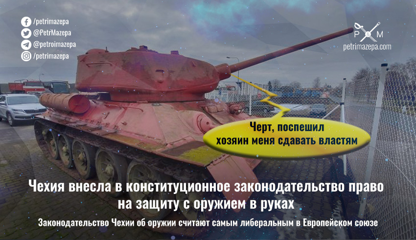Чехия внесла право на защиту с оружием в руках в свое конституционное законодательство. Ранее конституционный закон об этом приняли обе палаты парламента страны. Причем, нижняя палата депутатов приняла это изменение более чем конституционным большинством. Закон ждет подписи президента, который теперь не может наложить на него вето. Крайний срок начала работы данной нормы – 1 сентября 2021 года.