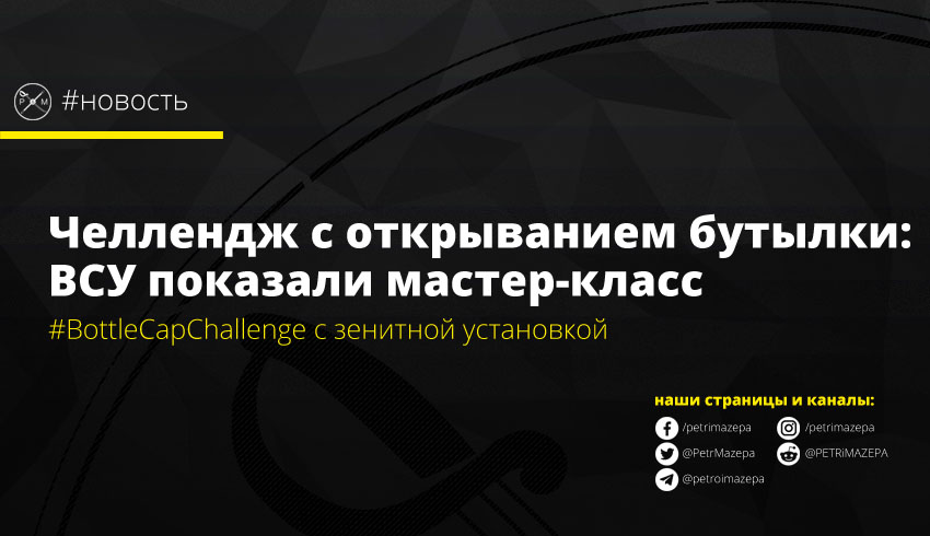 На видео, обнародованном в соцсети Odessa.Ltd, украинский боец разворотом ЗУ-23-2 легко отвинчивает крышку пластиковой бутылки, задев ее только пламегасителями стволов. Правда, авторство видео не указано, и бойцы какого подразделения присоединились к челленджу, не понятно.