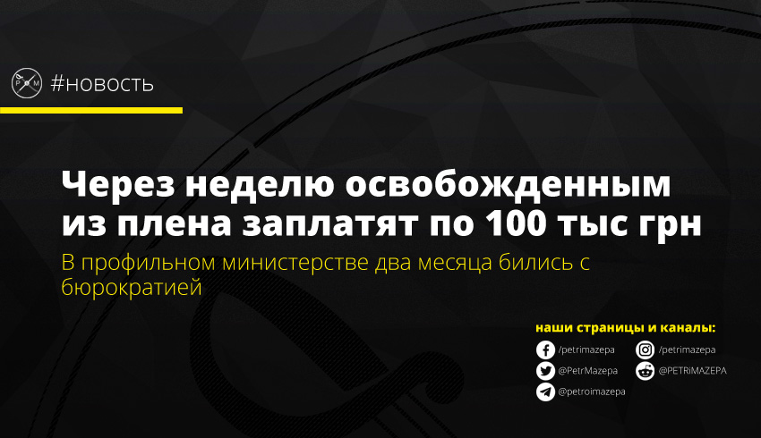 Через неделю освобожденным из плена заплатят по 100 тыс грн