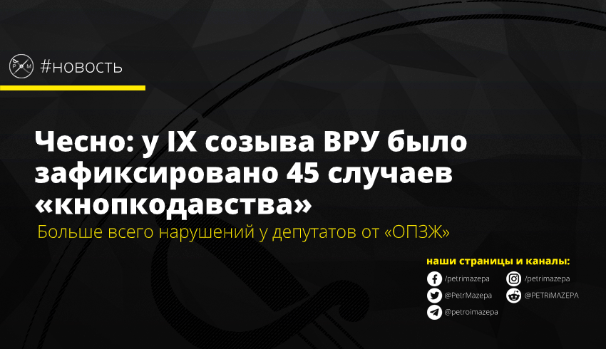 Чесно: у IX созыва ВРУ было зафиксировано 45 случаев «кнопкодавства»