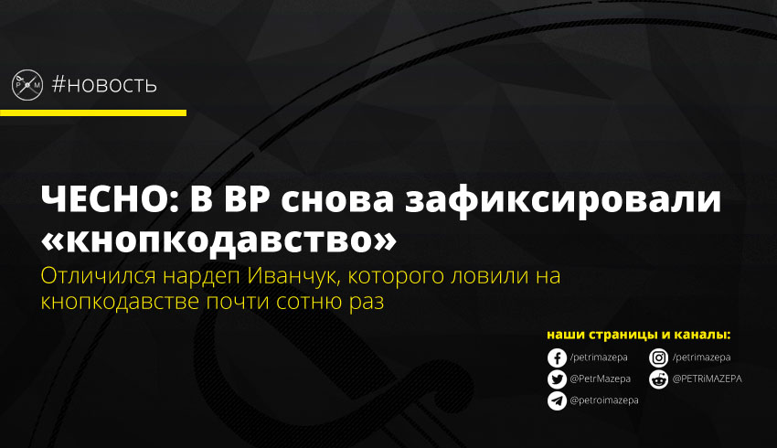 Движение «Чесно» сообщило о фиксации очередного случая «кнопкодавства» в Верховной Раде – отличился нардеп от группы «Довiра» Андрей Иванчук, которого на «кнопкодавстве» ловили около сотни раз. Он проголосовал скорее всего за своего соседа Олега Синютку, который представляет в ВР фракцию «ЕС».