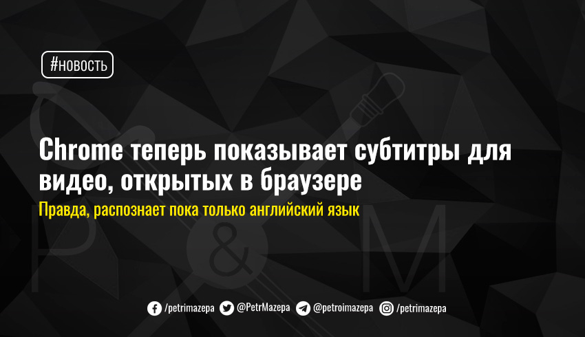 В браузере Google Chrome появилась поддержка субтитров в реальном времени для видео и аудио.