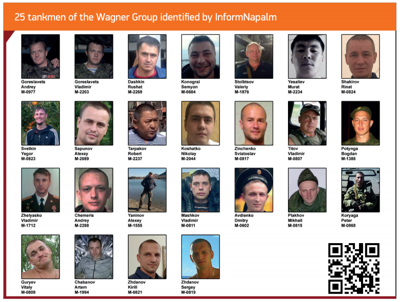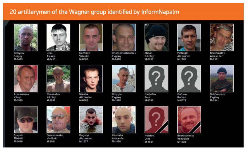 И такая смена одежды — далеко не единственный фокус из арсенала кремлёвских ЧВК. Наиболее опасным аспектом деятельности российских ЧВК является то, что они разжигают вооружённые конфликты и совершают международные преступления, что подтверждают и сами наёмники ЧВК «Вагнер» [26, 27, 28]. Наряду с военными преступлениями и преступлениями против человечности Служба безопасности Украины (СБУ) подозревает их в том, что 14 июня 2014 года они сбили украинский военно-транспортный самолёт Ил-76МД с 49 десантниками на борту. Это преступление рассматривается как «террористический акт, который привёл к гибели людей и нанёс значительный материальный ущерб». Согласно информации, опубликованной СБУ [29], Дмитрий Уткин сам отдал приказ сбить самолёт двум наёмникам ЧВК «Вагнер» — Андрею Гуралеву (личный номер М-1235) и Андрею Лебедеву (личный номер М-1671).