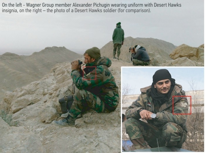 В данный момент российским наёмным войскам не хватает только военных кораблей, подводных лодок, боевых самолётов и баллистических ракет, но, учитывая текущий темп их развития, время, когда они их получат, может быть не за горами. В то же время они могут использовать любую униформу или знаки различия для выполнения своих задач и скрывать свою истинную принадлежность. Так, один из наёмников ЧВК «Вагнер» Александр Пичугин (личный номер M-1706, командир огневого взвода, был замечен в Сирии в форме и с нашивками сирийского подразделения «Соколы пустыни» [25].