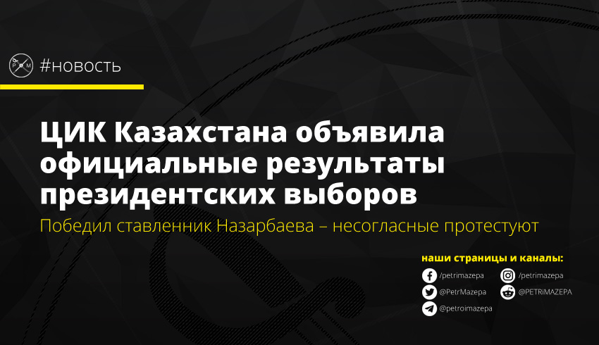 - 9 мая экзит-полы обнародовал данные, согласно которым ставленник экс-главы государства Нурсултана Назарбаева получил большинство голосов на выборах. Тем временем, страну охватили протесты против заведомо известных результатов.