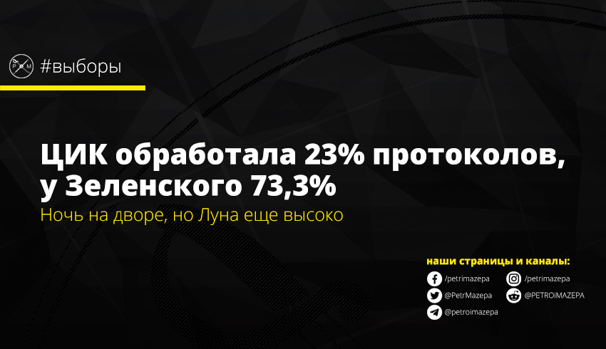 ЦИК обработала 23% протоколов, у Зеленского 73,3%