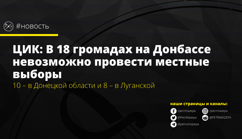 Центральная избирательная комиссия проанализировала информацию, предоставленную Донецкой и Луганской военно-гражданскими администрациями, и пришла к выводу о невозможности проведения местных выборов в 18 громадах на Донбассе.