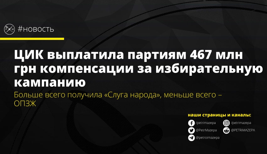 ЦИК выплатила партиям 467 млн грн компенсации за избирательную кампанию