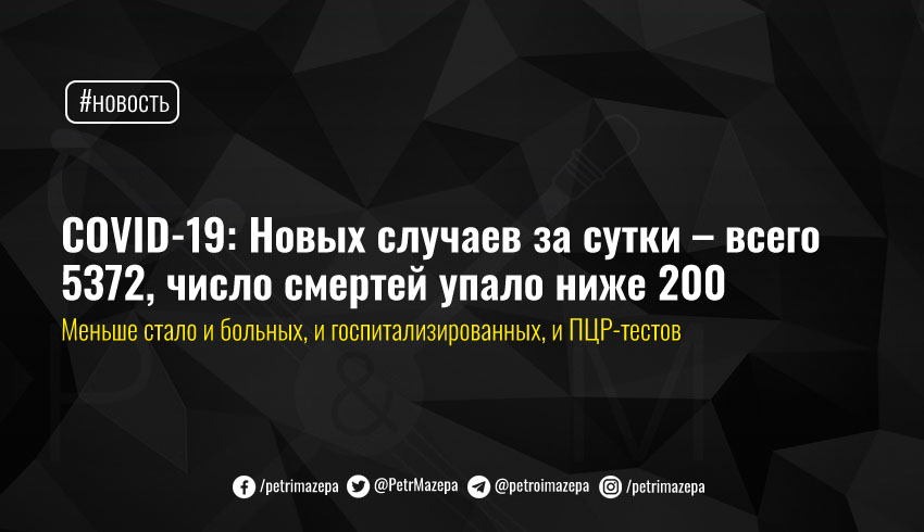 COVID-19: Новых случаев за сутки – всего 5372, число смертей упало ниже 200
