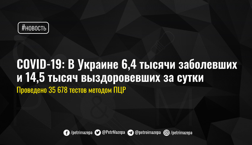 COVID-19: В Украине 6,4 тысячи заболевших и 14,5 тысяч выздоровевших за сутки