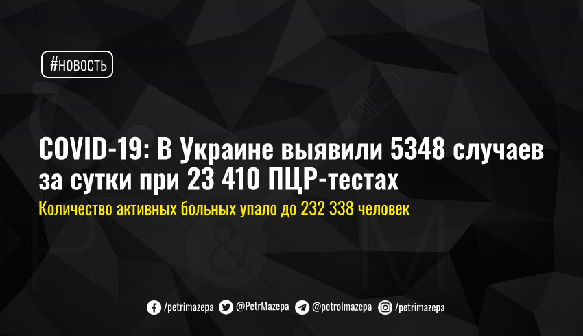 COVID-19: В Украине выявили 5348 случаев за сутки при 23 410 ПЦР-тестах