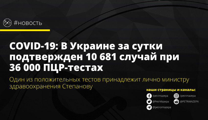 COVID-19: В Украине за сутки подтвержден 10 681 случай при 36 000 ПЦР-тестах