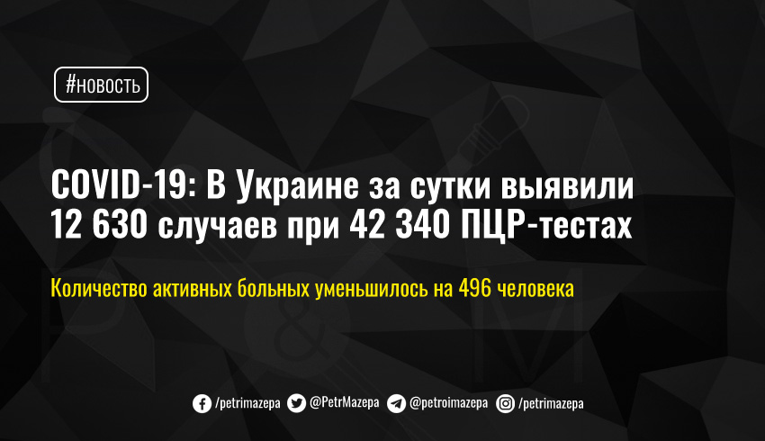 COVID-19: В Украине за сутки выявили 12 630 случаев при 42 340 ПЦР-тестах