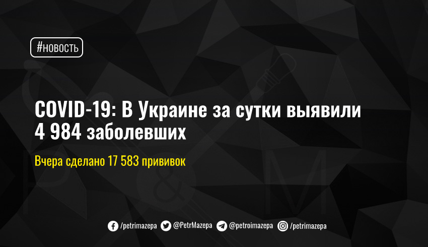 COVID-19: В Украине за сутки выявили 4 984 заболевших
