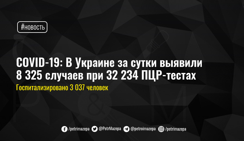 COVID-19: В Украине за сутки выявили 8 325 случаев при 32 234 ПЦР-тестах