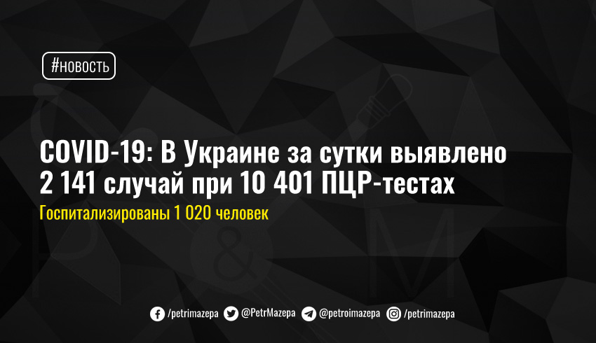 COVID-19: В Украине за сутки выявлено 2 141 случай при 10 401 ПЦР-тестах