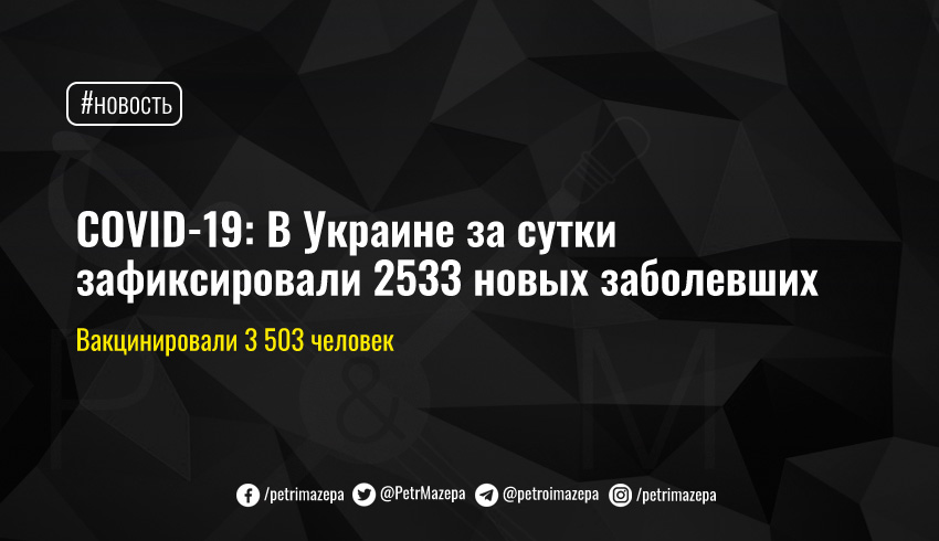COVID-19: В Украине за сутки зафиксировали 2533 новых заболевших