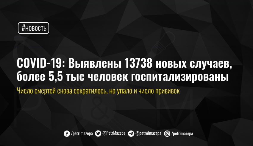 COVID-19: Выявлены 13738 новых случаев, более 5,5 тыс человек госпитализированы