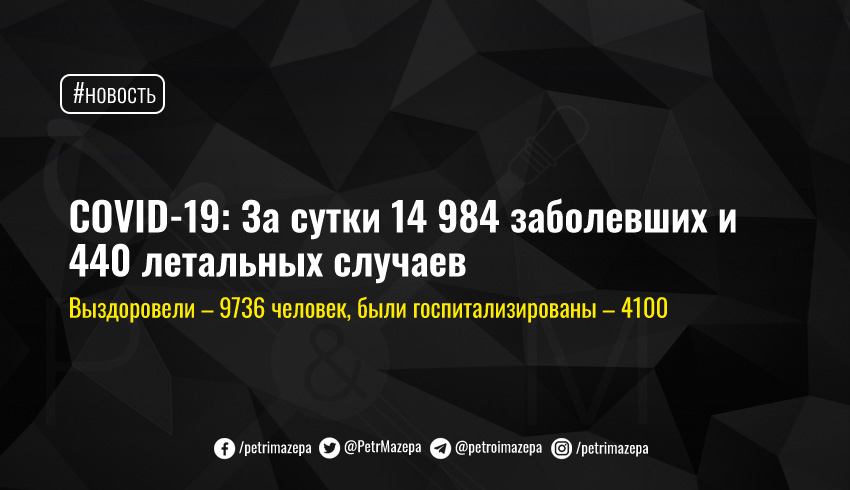 COVID-19: За сутки 14 984 заболевших и 440 летальных случаев