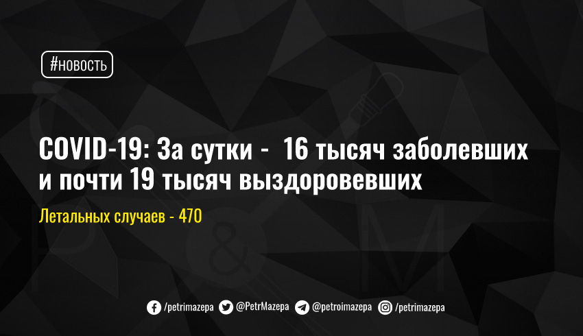 COVID-19: За сутки -  16 тысяч заболевших и почти 19 тысяч выздоровевших