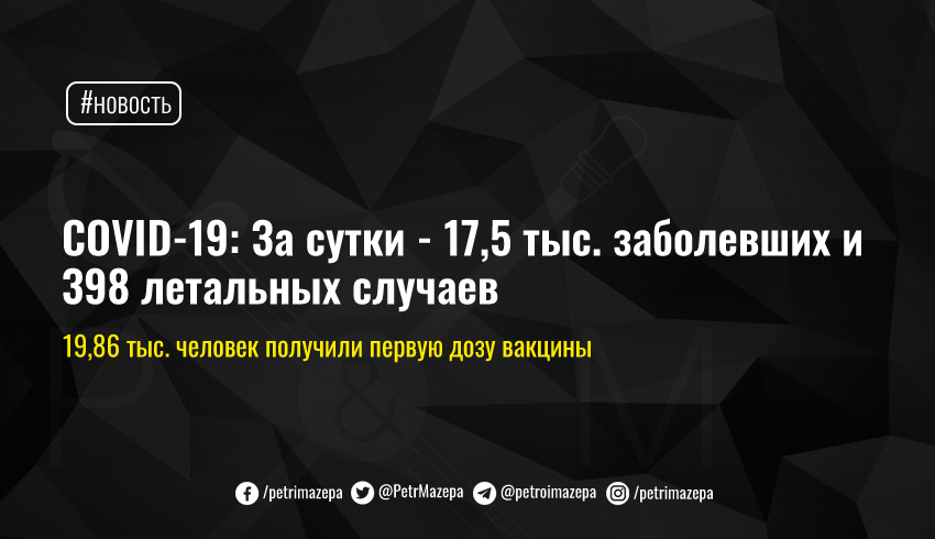 COVID-19: За сутки - 17,5 тыс. заболевших и 398 летальных случаев