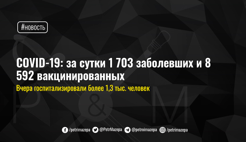 COVID-19: за сутки 1 703 заболевших и 8 592 вакцинированных