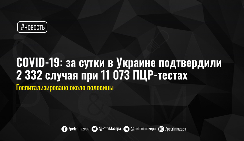 COVID-19: за сутки в Украине подтвердили 2 332 случая при 11 073 ПЦР-тестах