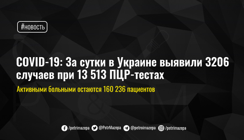 COVID-19: За сутки в Украине выявили 3206 случаев при 13 513 ПЦР-тестах