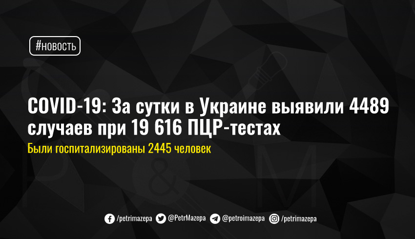 COVID-19: За сутки в Украине выявили 4489 случаев при 19 616 ПЦР-тестах
