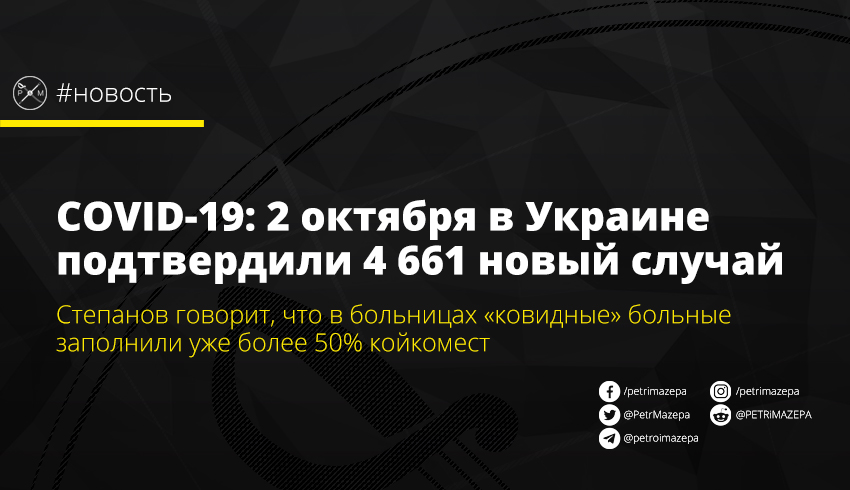 COVID-19: 2 октября в Украине подтвердили 4 661 новый случай