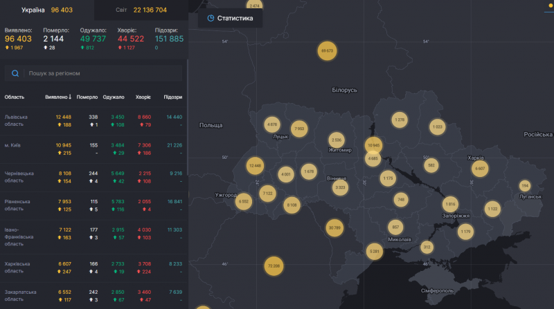 Об этом сообщает СНБО. Больше всего новых случаев было зафиксировано в Харьковской области (247) и в Киеве (215), а также Львовская область (188). Как сообщил министр здравоохранения Максим Степанов, за сутки проведено 19 591 ПЦР-тест и 18 180 ИФА-тестов.