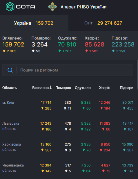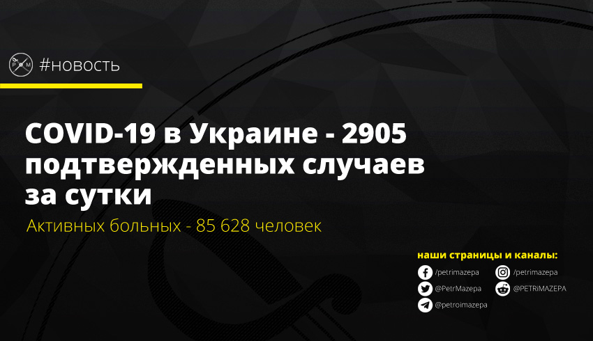 COVID-19 в Украине - 2905 подтвержденных случаев за сутки