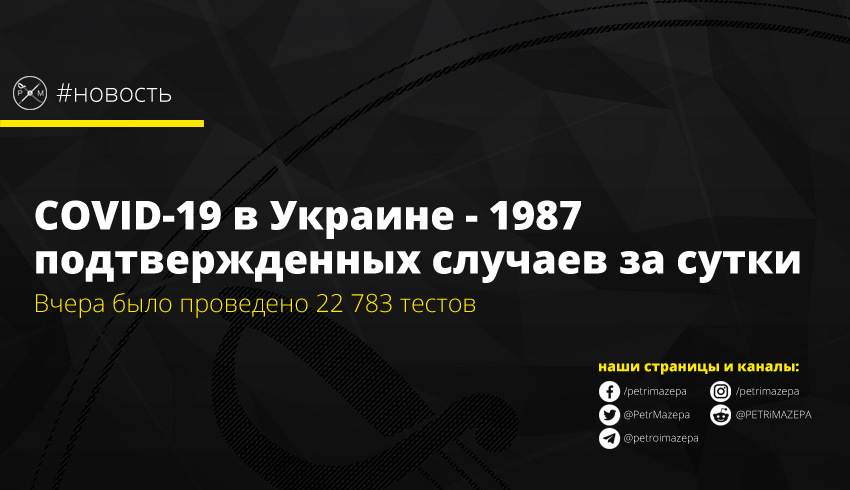 COVID-19 в Украине - 1987 подтвержденных случаев за сутки