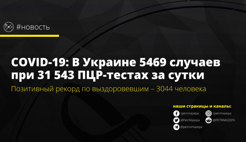 COVID-19: В Украине 5469 случаев при 31 543 ПЦР-тестах за сутки