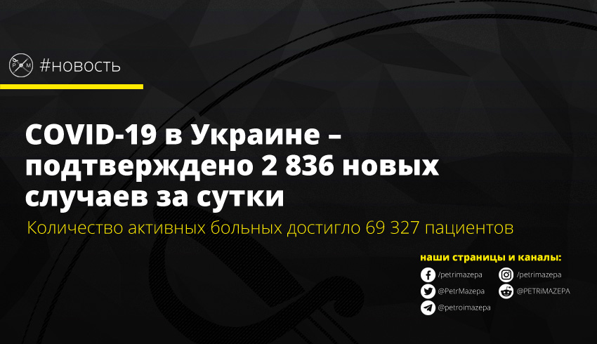 COVID-19 в Украине – подтверждено 2 836 новых случаев за сутки