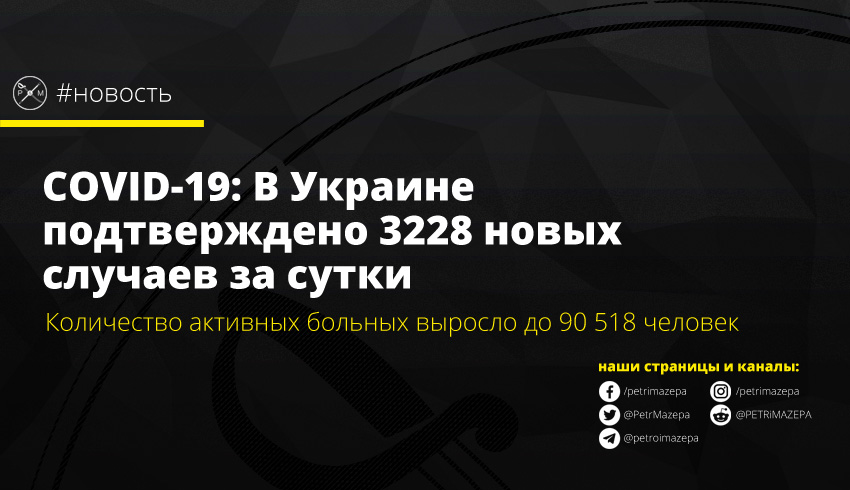 COVID-19: В Украине подтверждено 3228 новых случаев за сутки