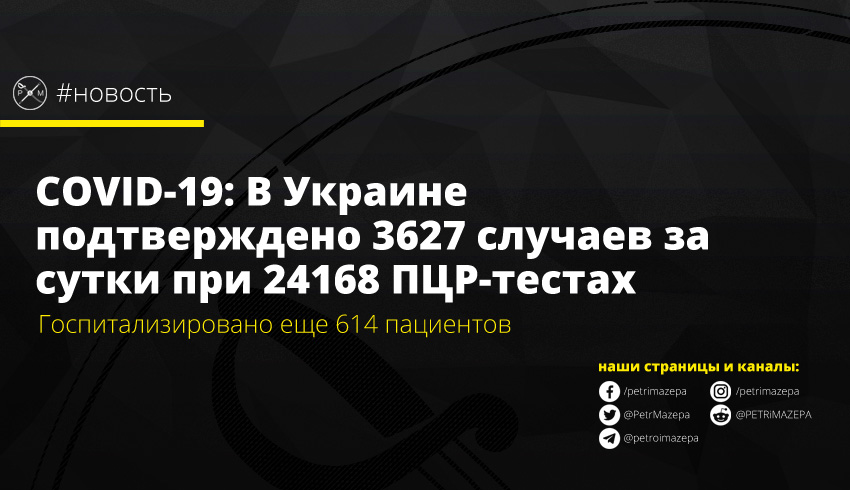 COVID-19: В Украине подтверждено 3627 случаев за сутки при 24168 ПЦР-тестах