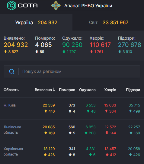 За 28 сентября в Украине подтвердили 3 627 новых случаев COVID-19. Общее количество подтвержденных случаев достигло 204 932 человек.