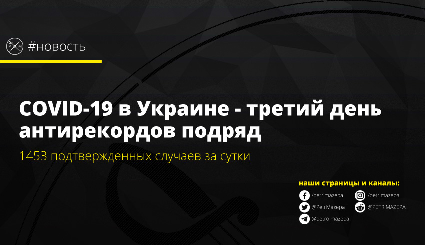 Теперь топ-5 дней по количеству подтверждённых случаев в Украине выглядит так: за 6 августа - 1 453 случаев, за 5 августа -1318 случаев, за 4 августа - 1271 случай, за 29 июля - 1197 случай, за 31 июля - 1172 новых случая.