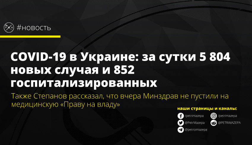 COVID-19 в Украине: за сутки 5 804 новых случая и 852 госпитализированных