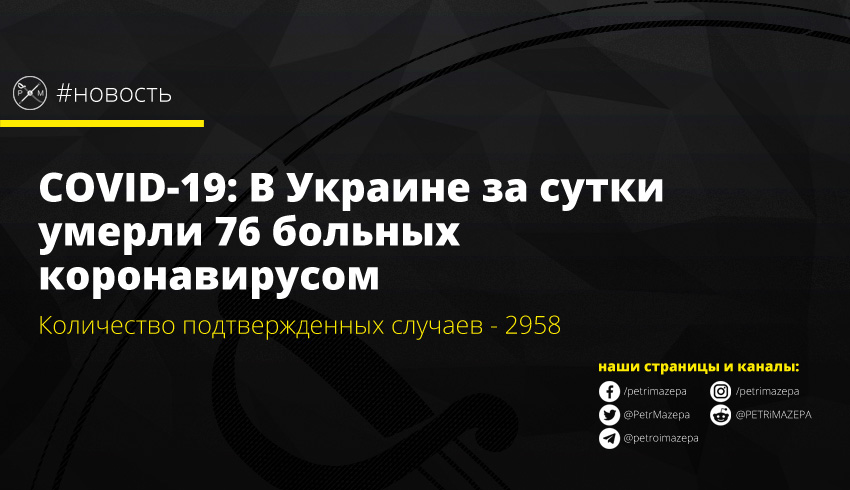 COVID-19: В Украине за сутки умерли 76 больных коронавирусом