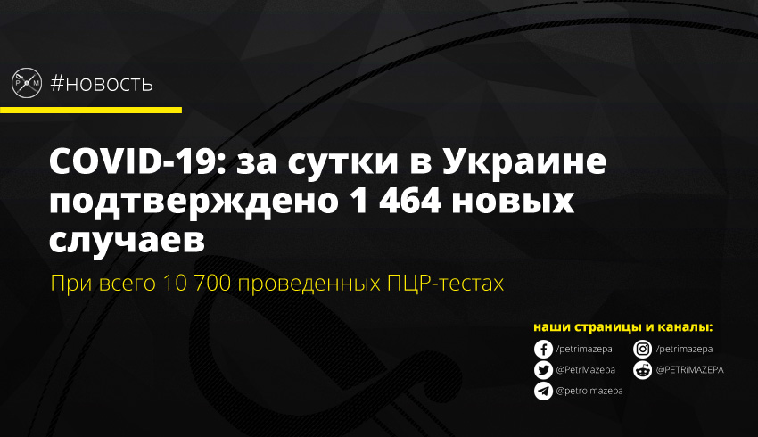 COVID-19: за сутки в Украине подтверждено 1 464 новых случаев