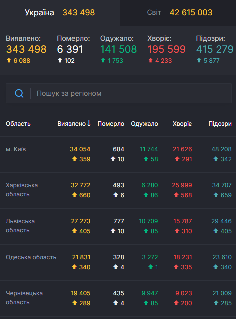 Наибольшее число заболевших зафиксировано в Харьковской области, также в лидерах – Львовская, Хмельницкая и Черниговская области, сообщает СНБО.